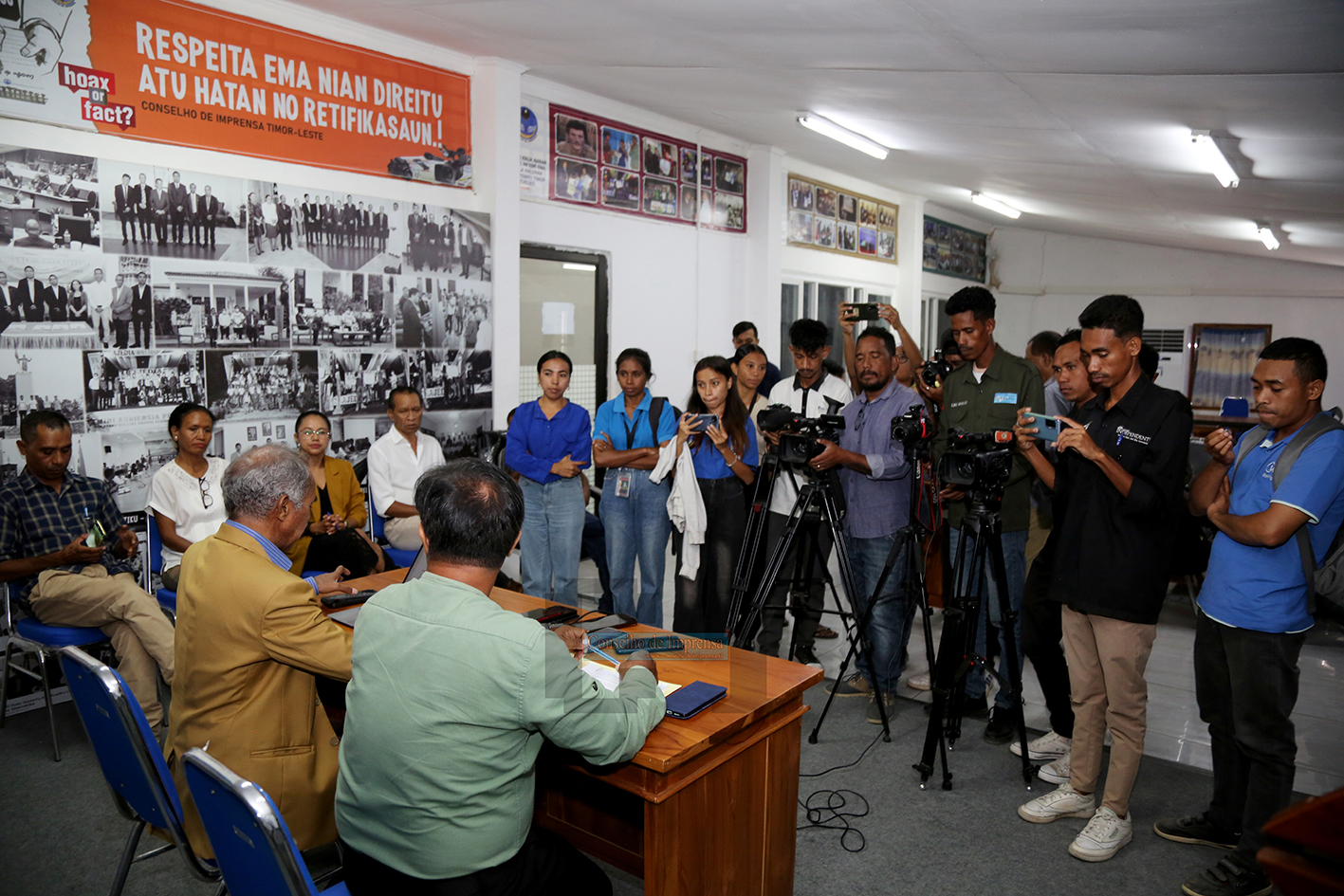 Díli – Conselho de Imprensa de Timor-Leste (CI) realiza enkontru dahuluk membru eleitu Conselho de Imprensa mandate datolu ba tinan haat, períodu 2025 – 2029, iha salaun enkontru Conselho de Imprensa, Quintal Boot, Dili.