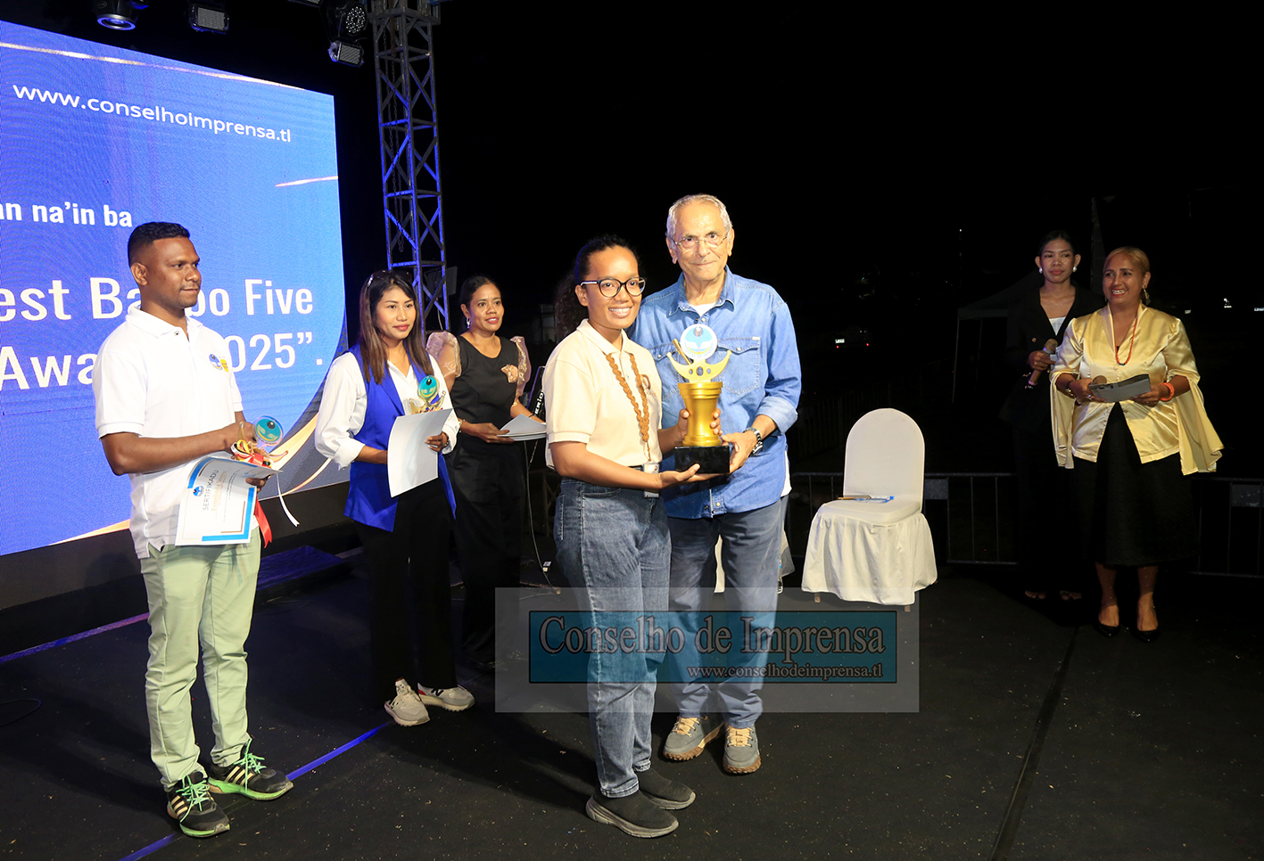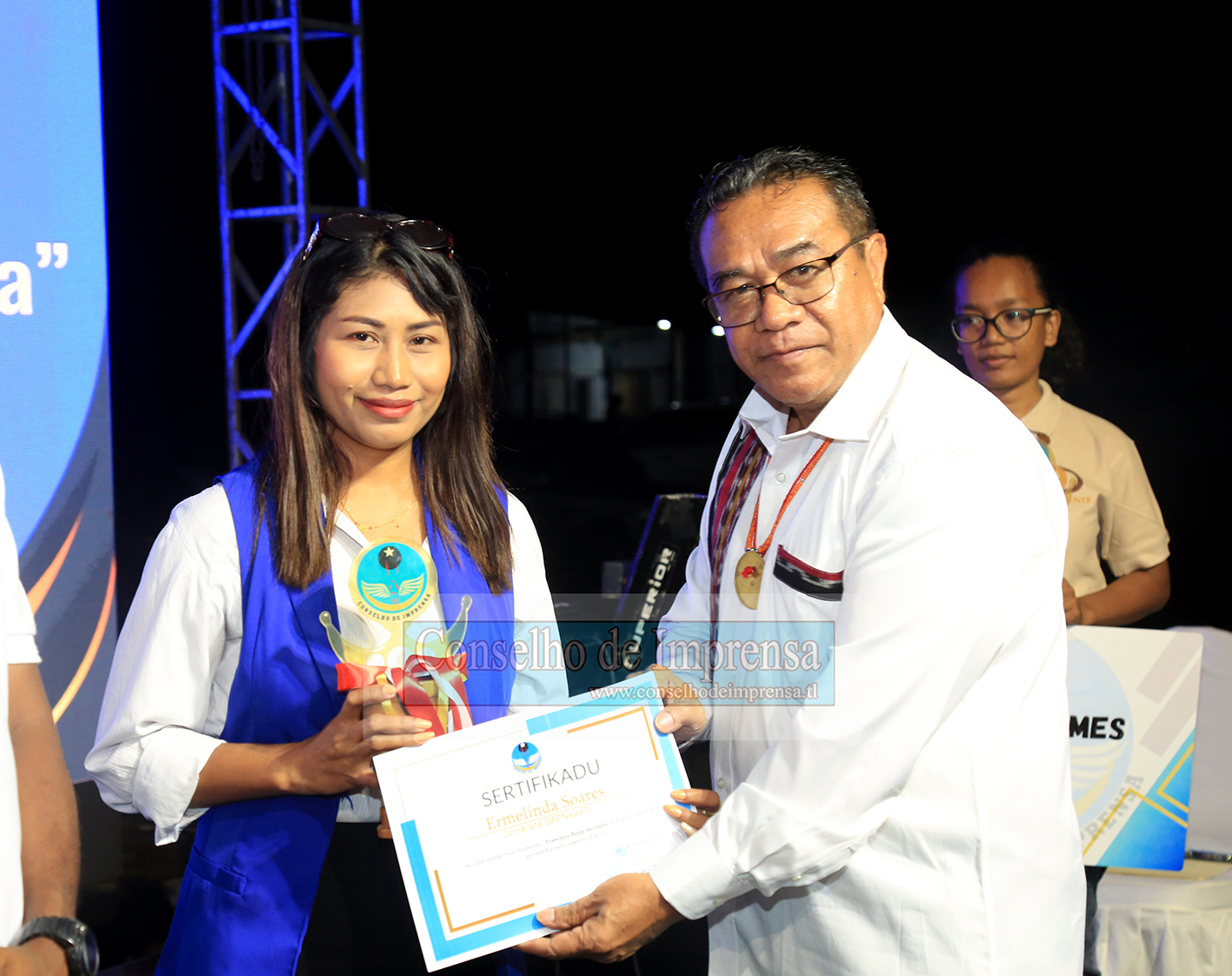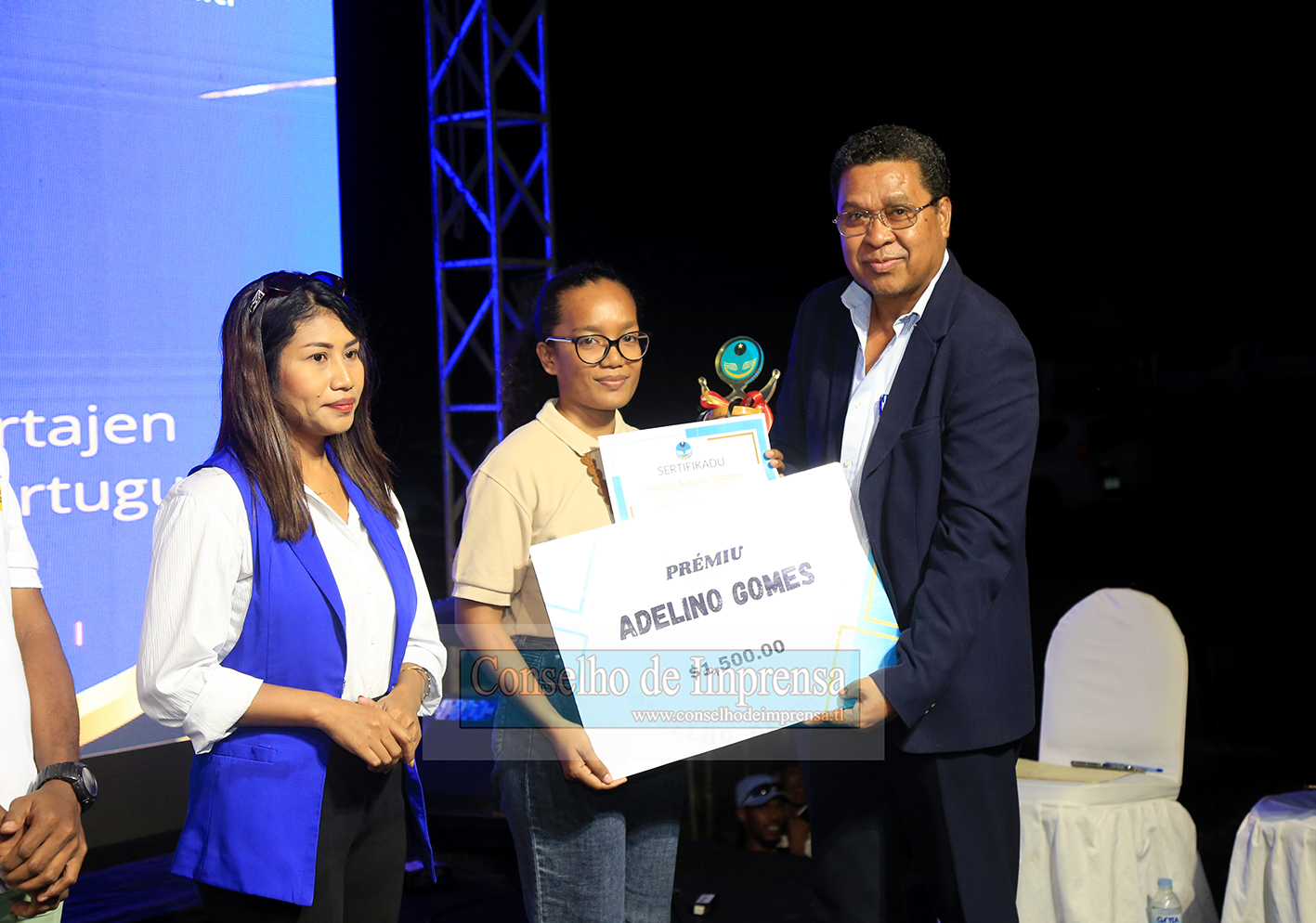 Jornalista Online SAPNews.TL, Ermelinda Soares, (Manan naโin Prรฉmiu Francisco Borja da Costa โ Reportรกzen Jornalรญstiku ho Asuntu Sosiรกl, iha Kategoria Mรญdia Imprime no Online).
