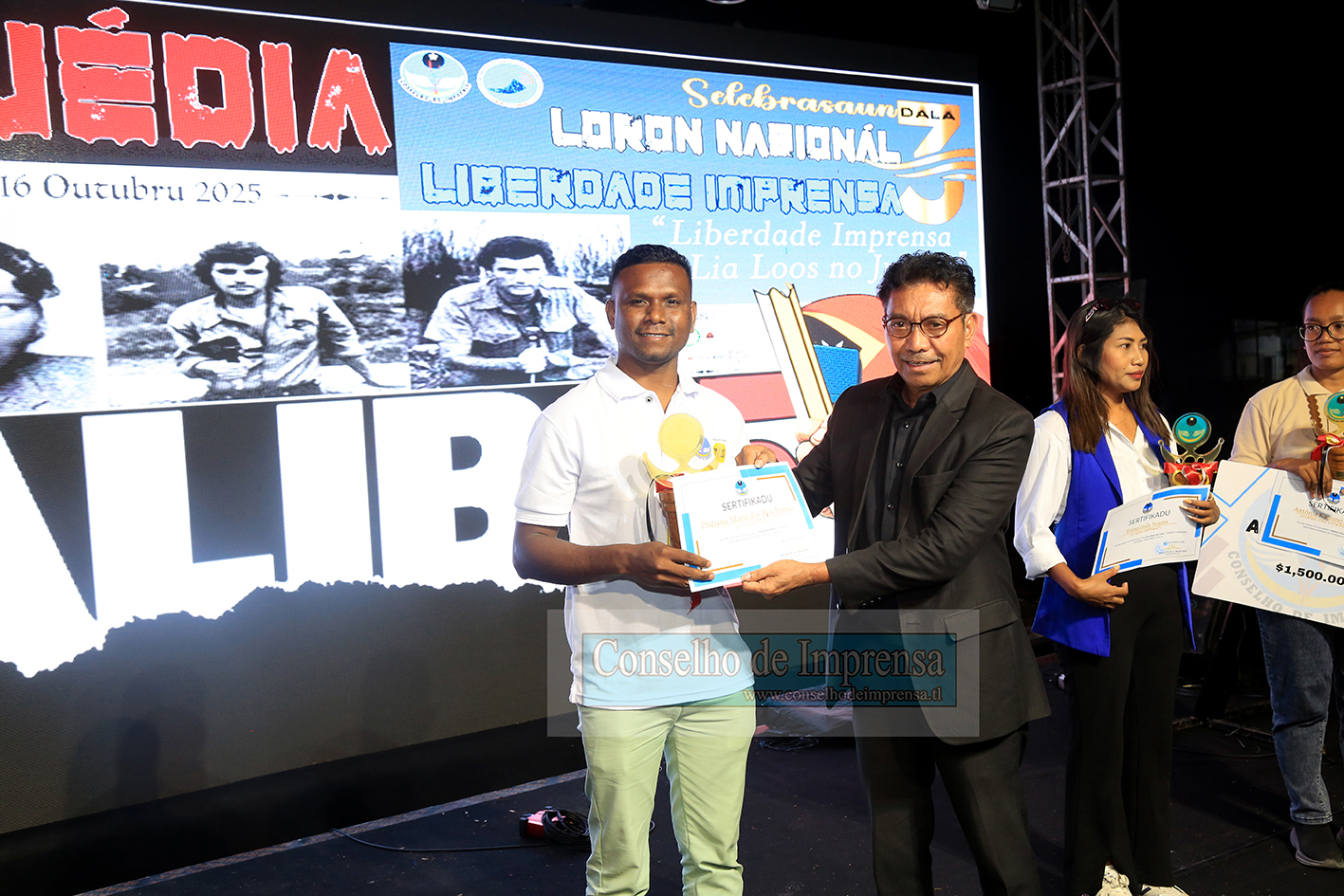 Balibรณ โ Conselho de Imprensa de Timor-Leste (CITL) atribui prรฉmiu Conselho de Imprensa ba vensedรณr jornalista naโin 3 iha Komemorasaun Tinan 50 Trajรฉdia Balibรณ 5 no Selebrasaun Tinan 3 Loron Nasional Liberdade Imprensa, iha loron 16 Outubru 2025, iha Munisรญpiu Bobonaro, Postu Administrativu Balibรณ.