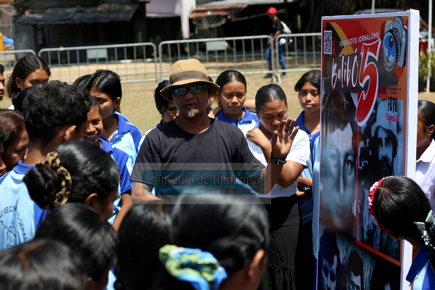Balibรณ โ Bainaka sira neโebรฉ partisipa iha atividade Komemorasaun Tinan 50 Trajรฉdia Balibรณ 5 no Selebrasaun Tinan 3 Loron Nasional Liberdade Imprensa, halaโo vizita ba Painel Foto Jornalรญzmu neโebรฉ prepara husi Conselho de Imprensa.